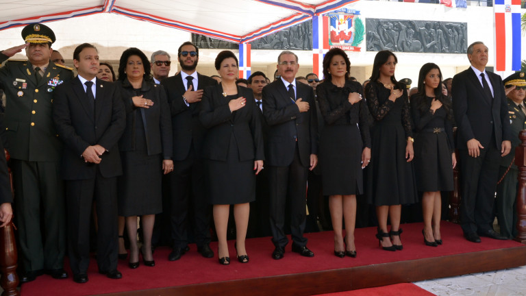 Presidente Danilo Medina, junto a su esposa, Cándida Montilla de Medina y la vicepresidenta Margarita Cedeño de Fernández, acompañados de la presidenta del Senado, Cristina Lizardo, al recibir los honores militares a su llegada al Congreso Nacional. Foto: Alfredo Olaverria/Presidencia República Dominicana Video YouTube Discurso: www.youtube.com/watch?v=COVSxJAdcgQ