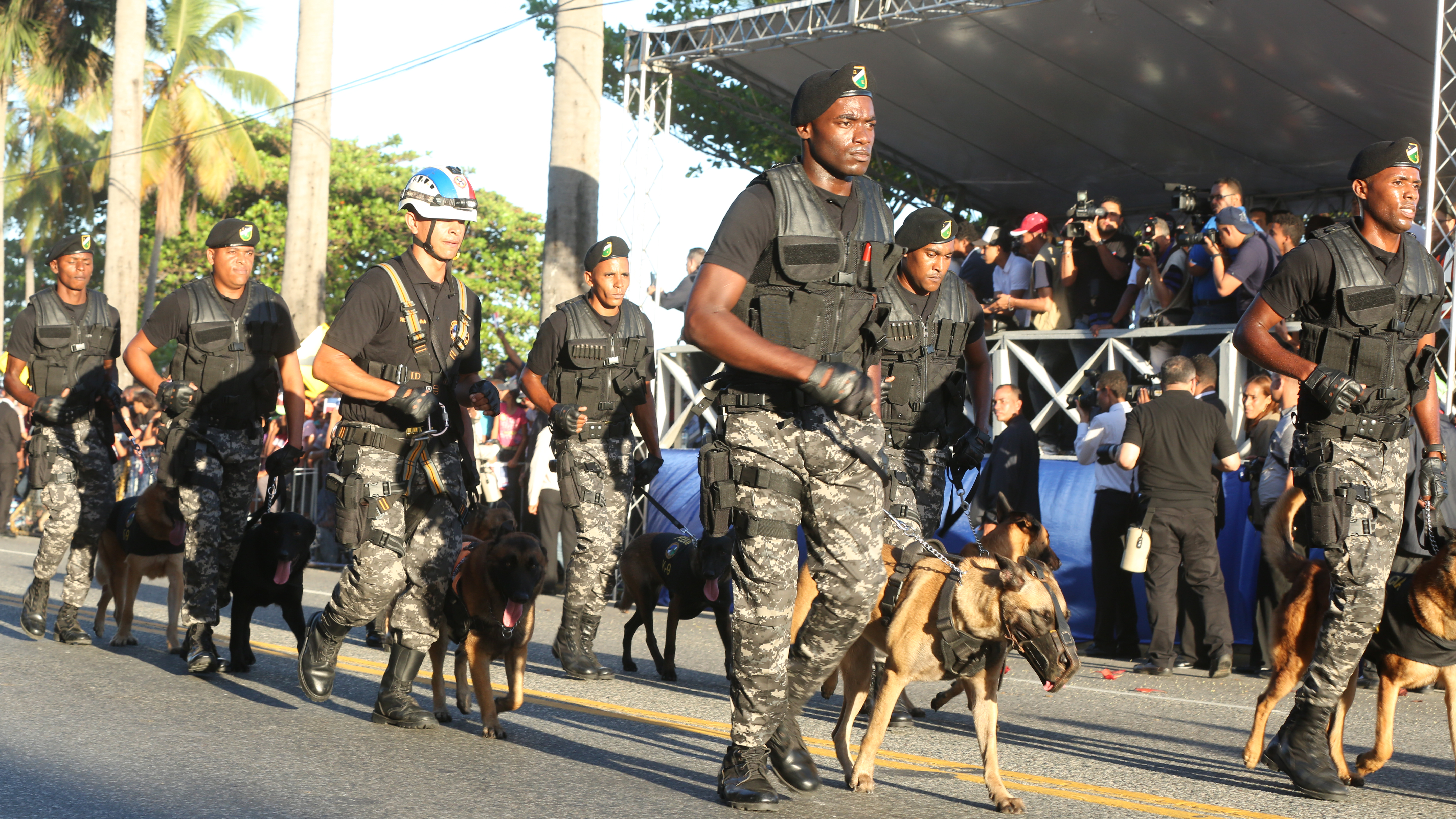 Unidad canina junto a sus entrenadores presentes en el desfile militar, ofrecido en honor al presidente Danilo Medina, como parte de los actos conmemorativos.