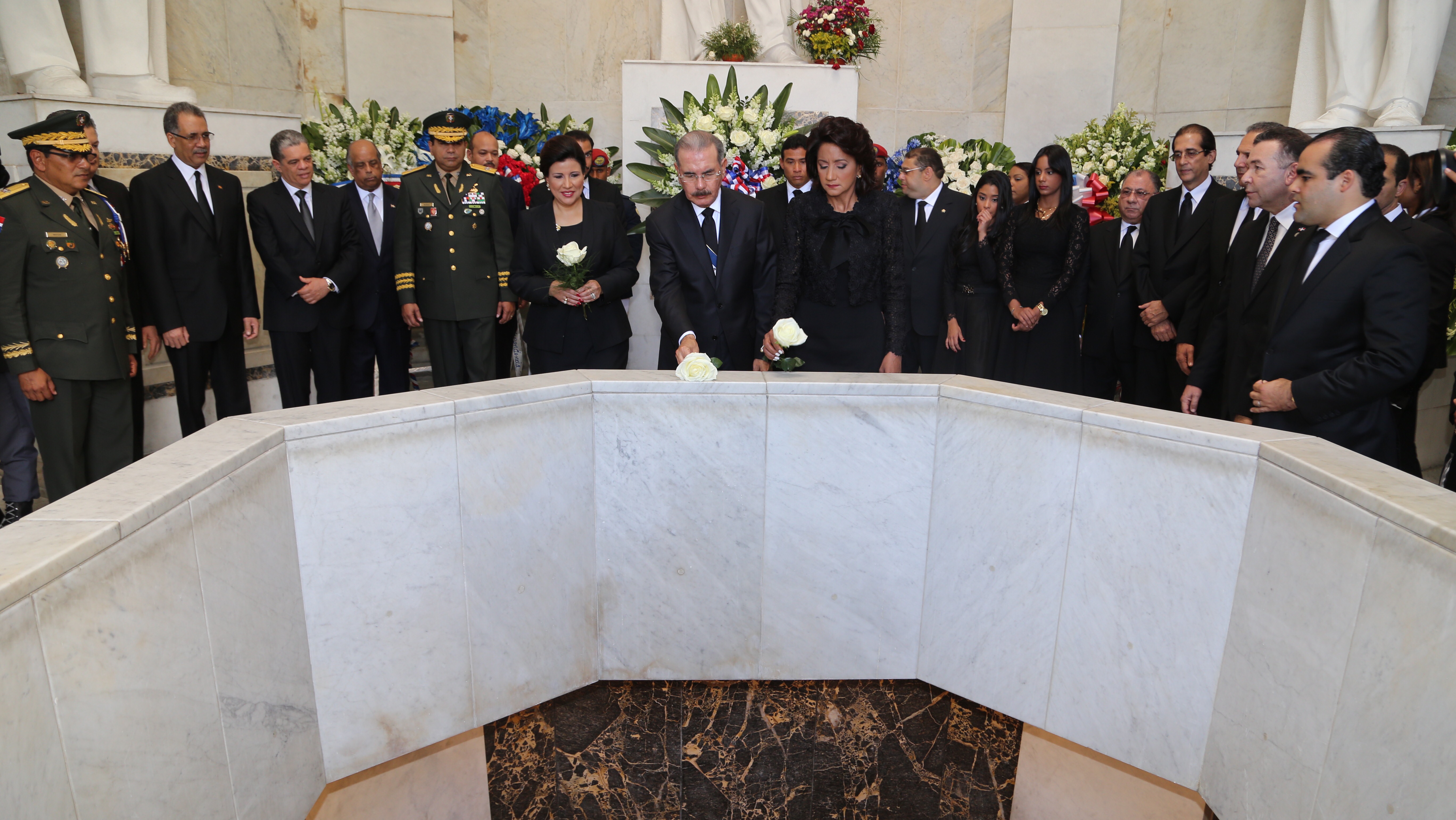 Ofrenda floral a los Padres de la Patria depositada por el presidente Danilo Medina, su esposa Cándida Montilla de Medina y la vicepresidenta Margarita Cedeño de Fernández, como parte de los actos conmemorativos del 171 aniversario de la Independencia Nacional.