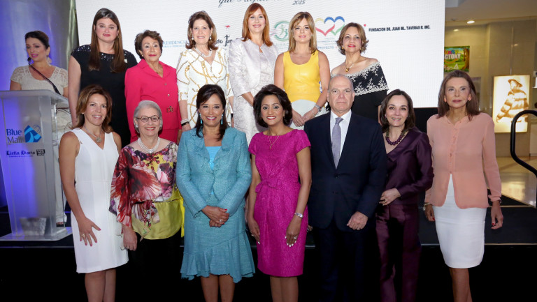 Al centro, la primera dama, Cándida Montilla de Medina; Luis Emilio Velutini, presidente de Grupo Velutini; Gema Hidalgo de Vargas, administradora general del Grupo de Comunicaciones Listín Diario; Rosa Margarita Bonetti, de la Fundación Propagas; Mariela Vicini, de la Fundación De Corazón a Corazón; Angélica Benítez de Ginebra, de la Fundación Juan Manuel Rodríguez Taveras; y Mirka Morales, del Patronato Nacional de Ciegos. Asimismo, Haydée Kuret de Rainieri por la Fundación Puntacana; María Esther Valiente de Villanueva, de la Fundación Quiéreme como soy; Pamela Freixas de Betances, por la Fundación Forjando un Futuro; Ana Bonetti, de la Fundación Caminantes por la Vida y Nora Toral de Castaños, del Voluntariado Plaza de la Salud.