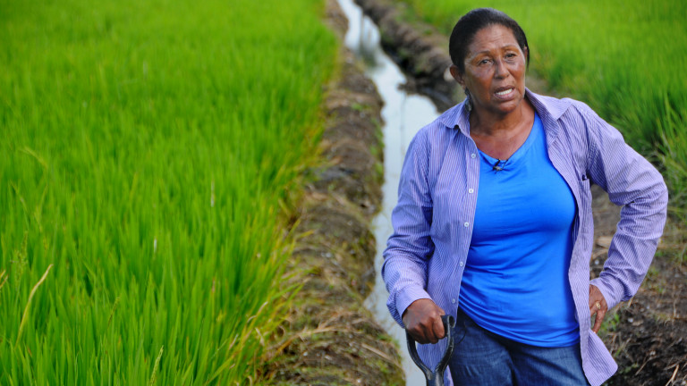 Bernardina Hernández, mejor conocida como doña Mora, es productora de arroz y líder comunitaria en Arenoso, provincia Duarte.