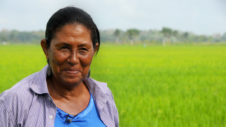 Bernardina Hernández, mejor conocida como doña Mora, es productora de arroz y líder comunitaria en Arenoso, provincia Duarte. "Me gusta servirle a la gente". "Hay que nacer con vocación de servicio", asegura.