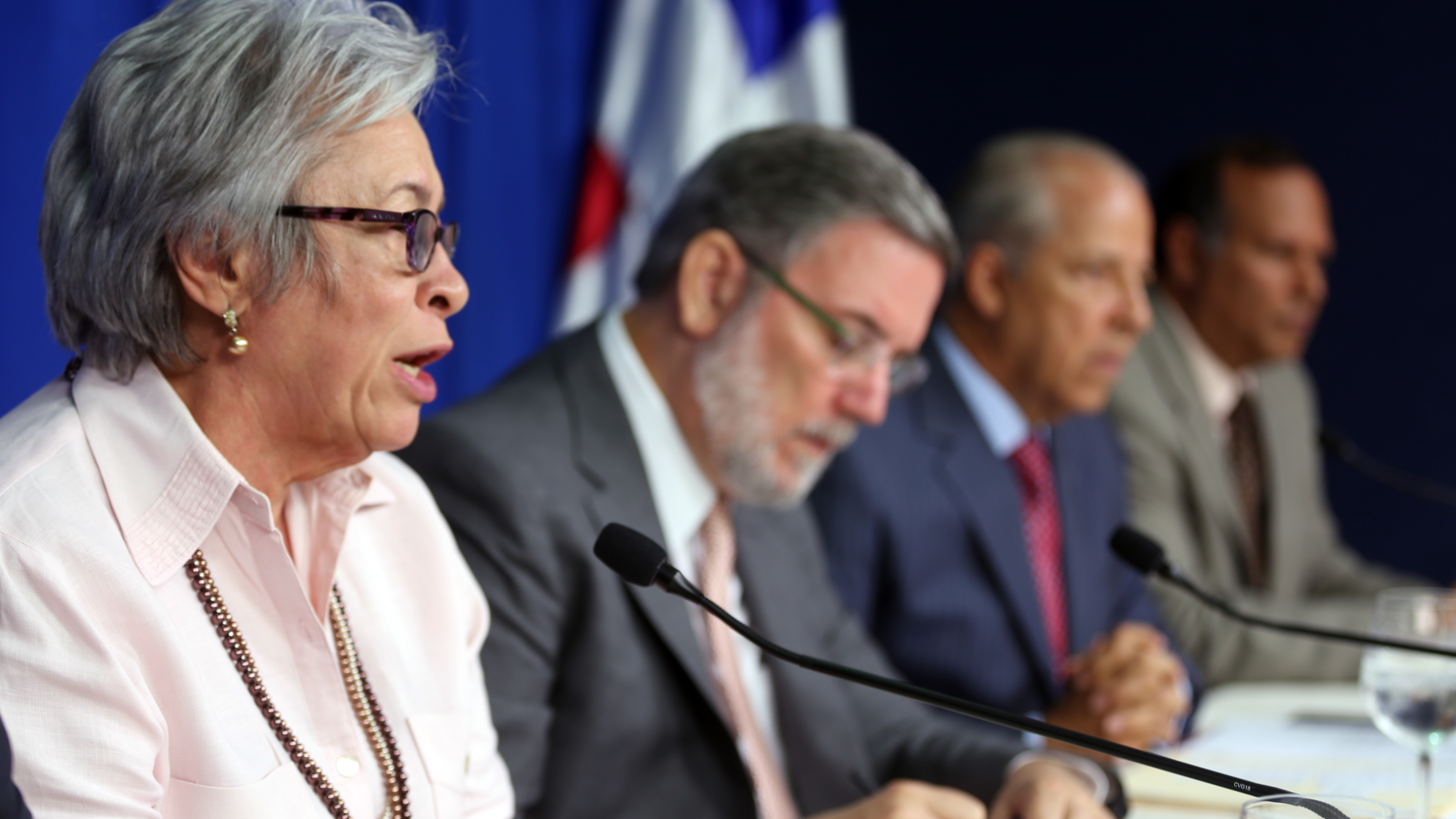 Ministra de Salud Pública, Altagracia Guzmán Marcelino, junto a funcionarios del sector salud, durante el encuentro.