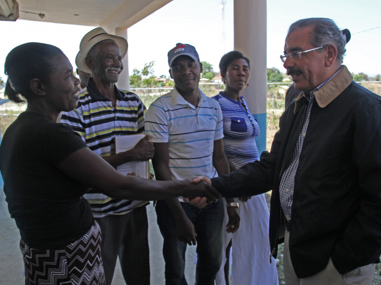 El presidente de la República, Danilo Medina, saluda a residentes en Macasías, Elías Piña, a su llegada a ese poblado.