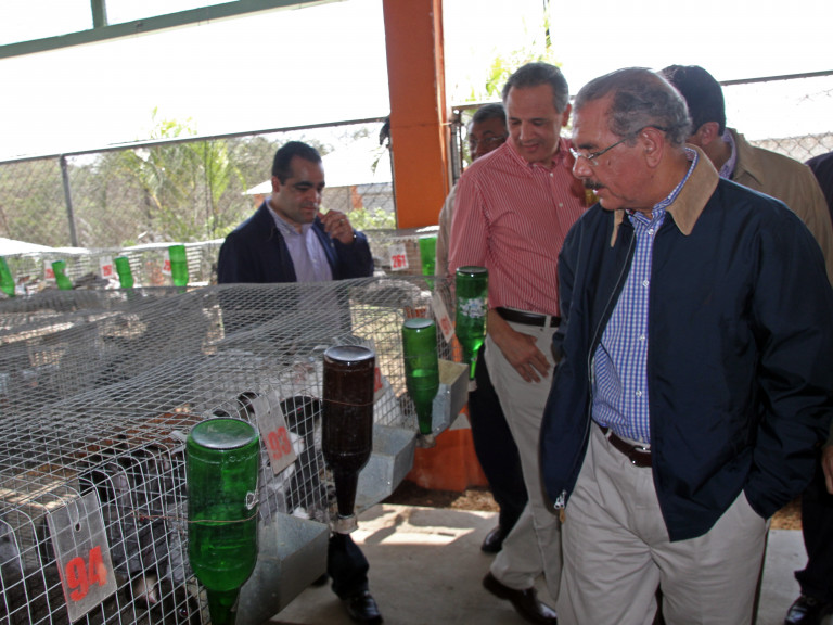 El presidente de la República, Danilo Medina, observa el funcionamiento de la Unidad Fronteriza de Producción Agropecuaria Macasías.