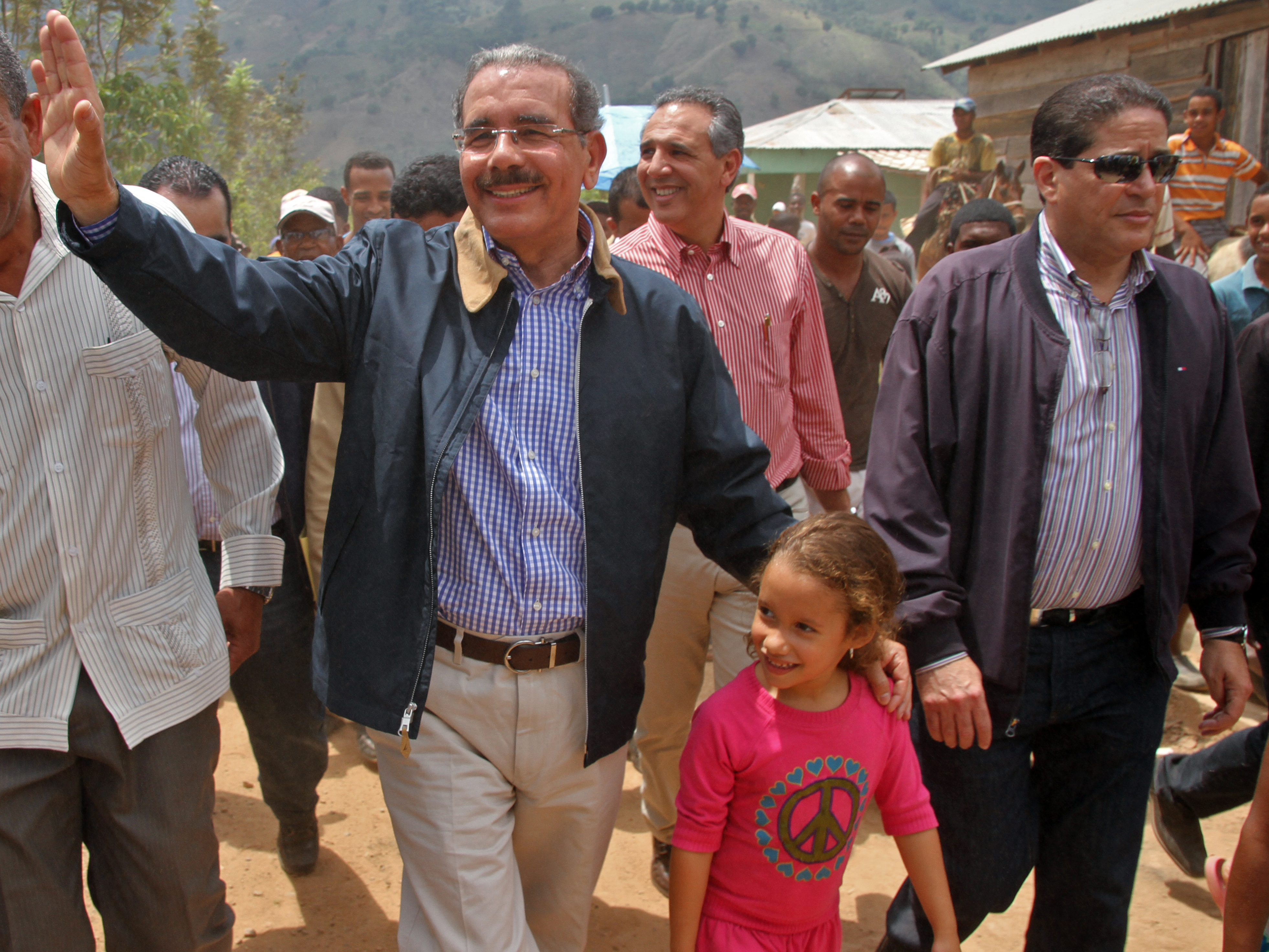 El presidente Danilo Medina camina por las calles de Río Limpio, junto a los moradores de la comunidad.