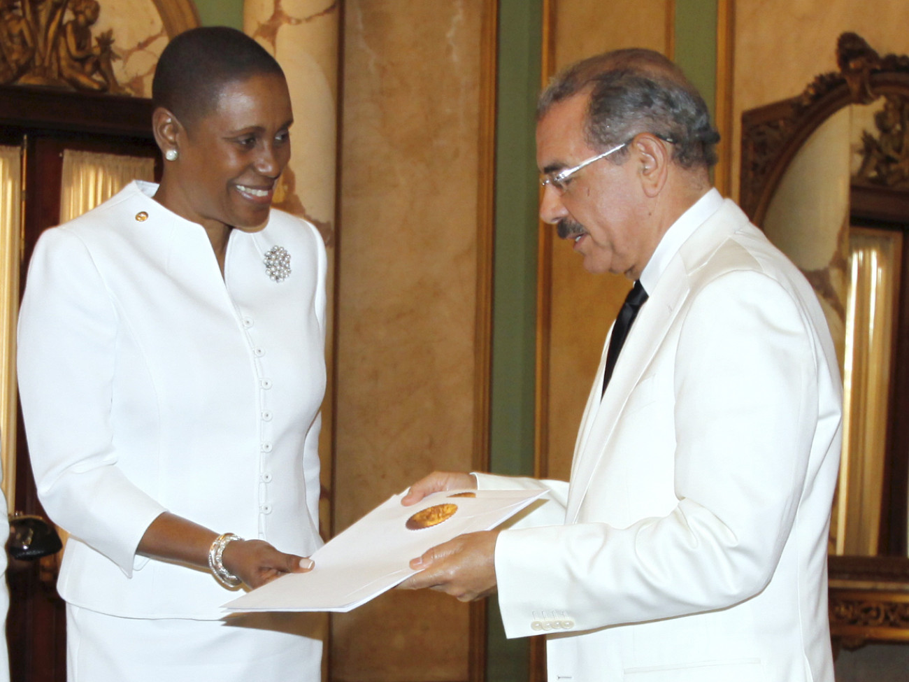 La doctora Iva Camile Gloudon, embajadora de la República de Trinidad y Tobago, presenta sus cartas credenciales ante el presidente Danilo Medina.