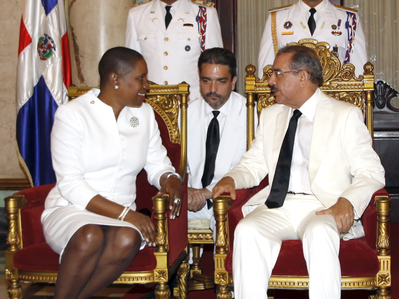 El jefe de Estado dominicano, Danilo Medina, y la embajadora Iva Camile Gloudon, conversan luego de la presentación de las cartas credenciales.