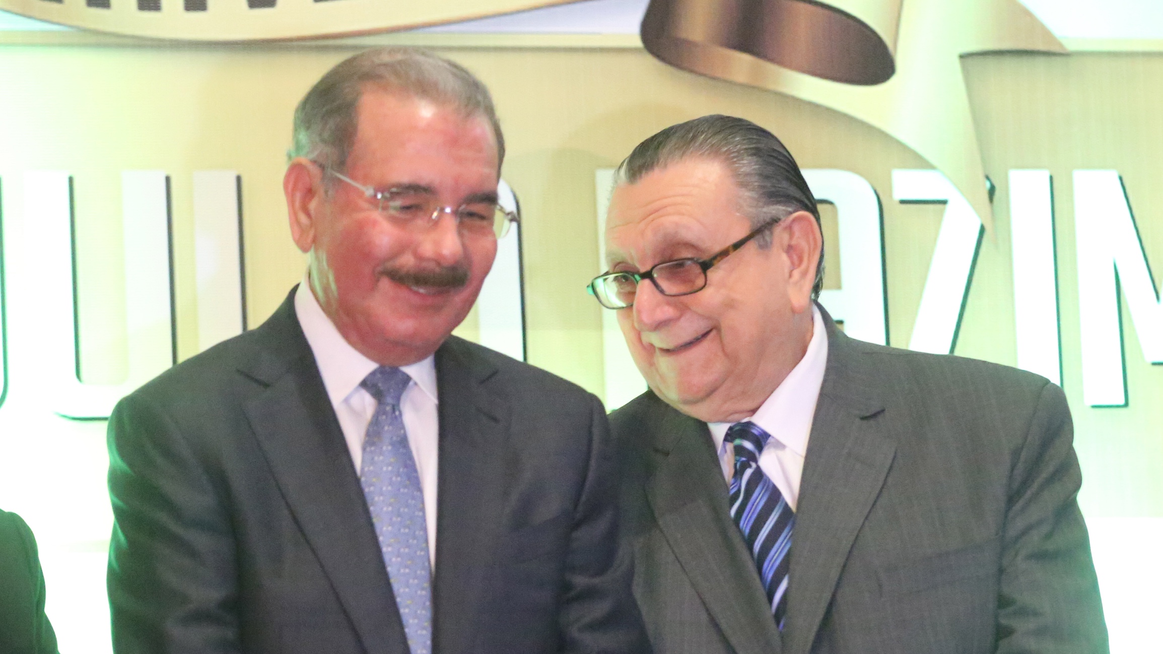 El presidente Danilo Medina junto a Julio Hazim, comentarista y productor de la Revista 110.