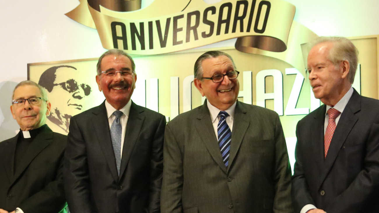 Monseñor Agripino Núñez Collado, el presidente Danilo Medina, Julio Hazim y el empresario José Luis Corripio (DonPepín).