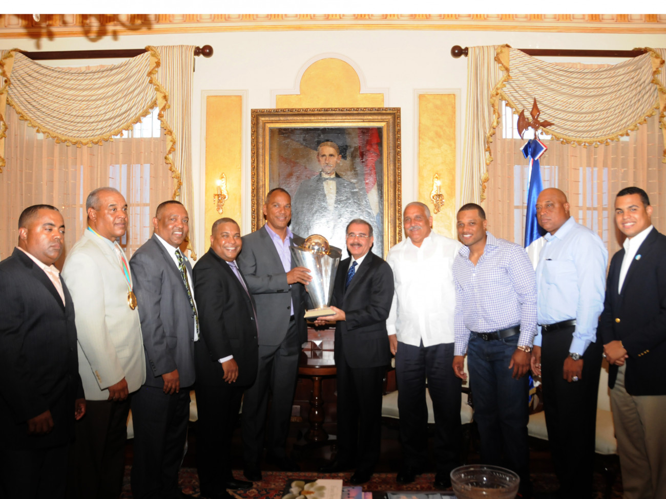 El presidente Danilo Medina recibe, en el Palacio Nacional, el trofeo de campeón que obtuvo el equipo de República Dominicana en el Clásico Mundial de Béisbol 2013.