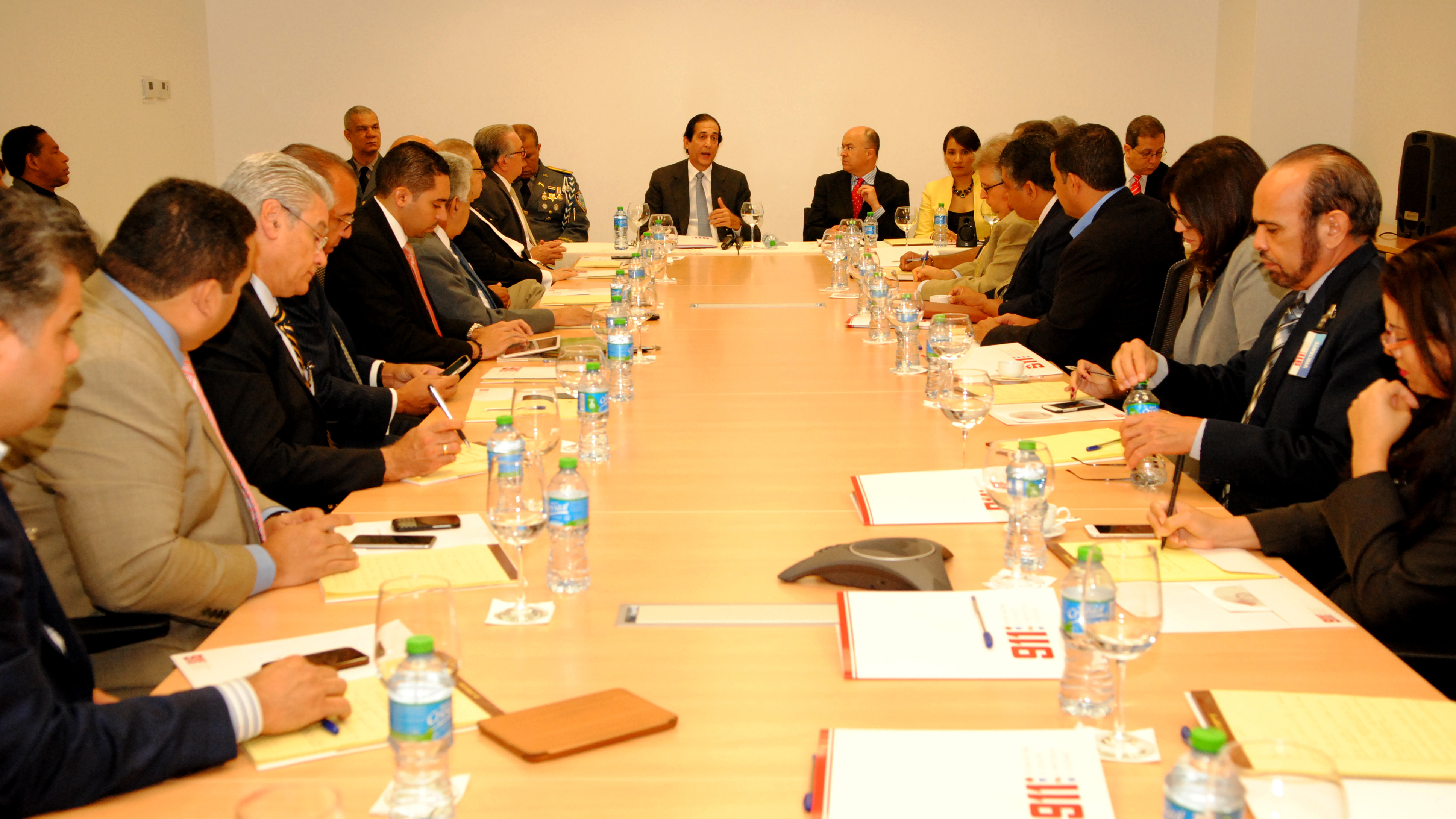 Ministro de la Presidencia, Gustavo Montalvo junto a ejecutivo del Sistema 911, autoridades y directivos de instituciones empresariales y civiles de Santiago, invitados para presentarles el proyecto de expansión del Sistema Nacional de Atención a Emergencias y Seguridad 911, en su sede.