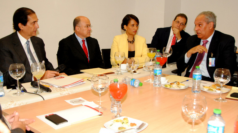 Ministro de la Presidencia, Gustavo Montalvo junto a ejecutivo del Sistema 911, autoridades y directivos de instituciones empresariales y civiles de Santiago, invitados para presentarles el proyecto de expansión del Sistema Nacional de Atención a Emergencias y Seguridad 911, en su sede.