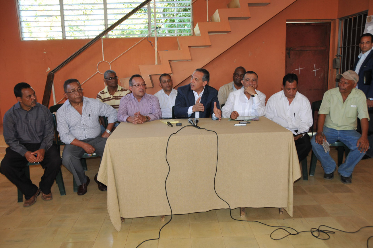 José Ramón Peralta, ministro Administrativo de la Presidencia, explica a los productores de Hacienda Estrella que fue allí a cumplir con la promesa hecha por el Presidente.