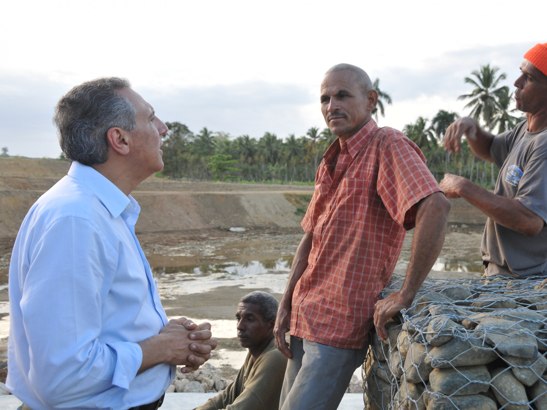 El ministro Administrativo de la Presidencia, José Ramón Peralta, escucha a los pobladores de una de las comunidades visitadas beneficiaria de los trabajos que el Gobierno del presidente Danilo Medina ejecuta en la zona del Bajo Yuna.