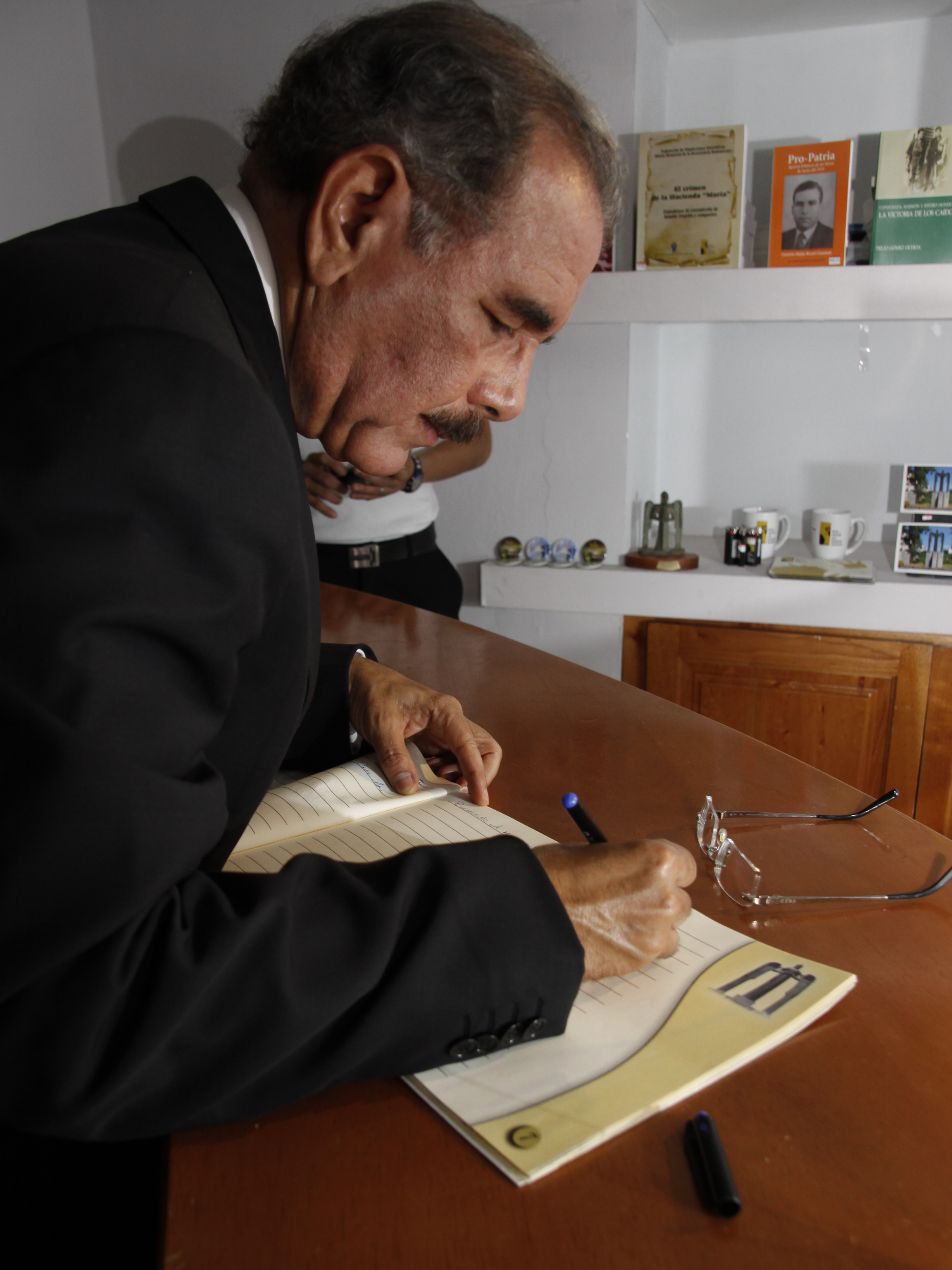 El presidente de la República, Danilo Medina, firma el libro de visitantes del museo Héroes de Constanza, Maimón y Estero Hondo, ubicado en la estación uno de la primera Línea del Metro de Santo Domingo.