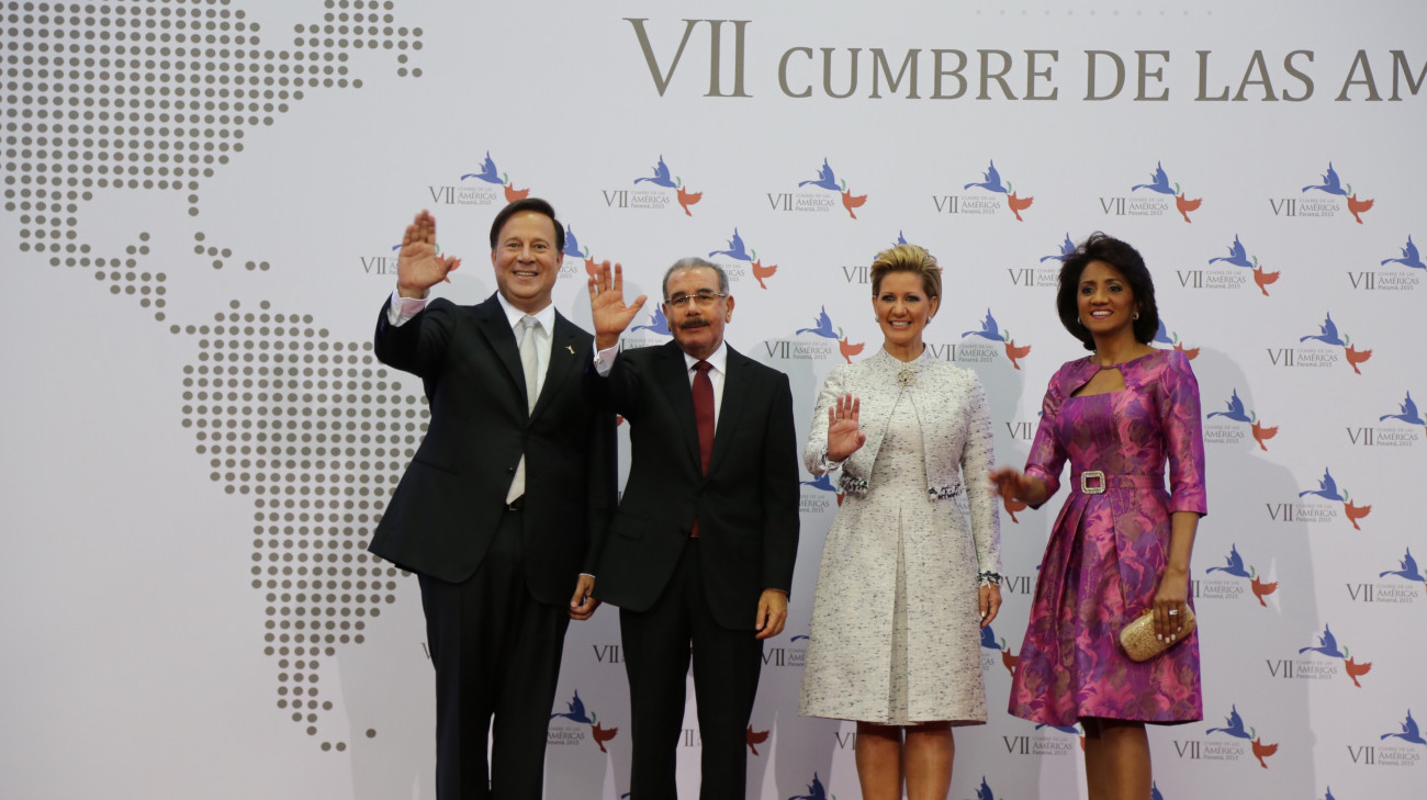 El presidente Danilo Medina y su esposa, Cándida Montilla de Medina, fueron recibidos por el presidente y la primera dama de Panamá, Juan Carlos Varela y Lorena Castillo de Varela. a su llegada al Centro de Convenciones ATLAPA para su participación en la ceremonia inaugural VII Cumbre de las Américas 2015, en Panamá.