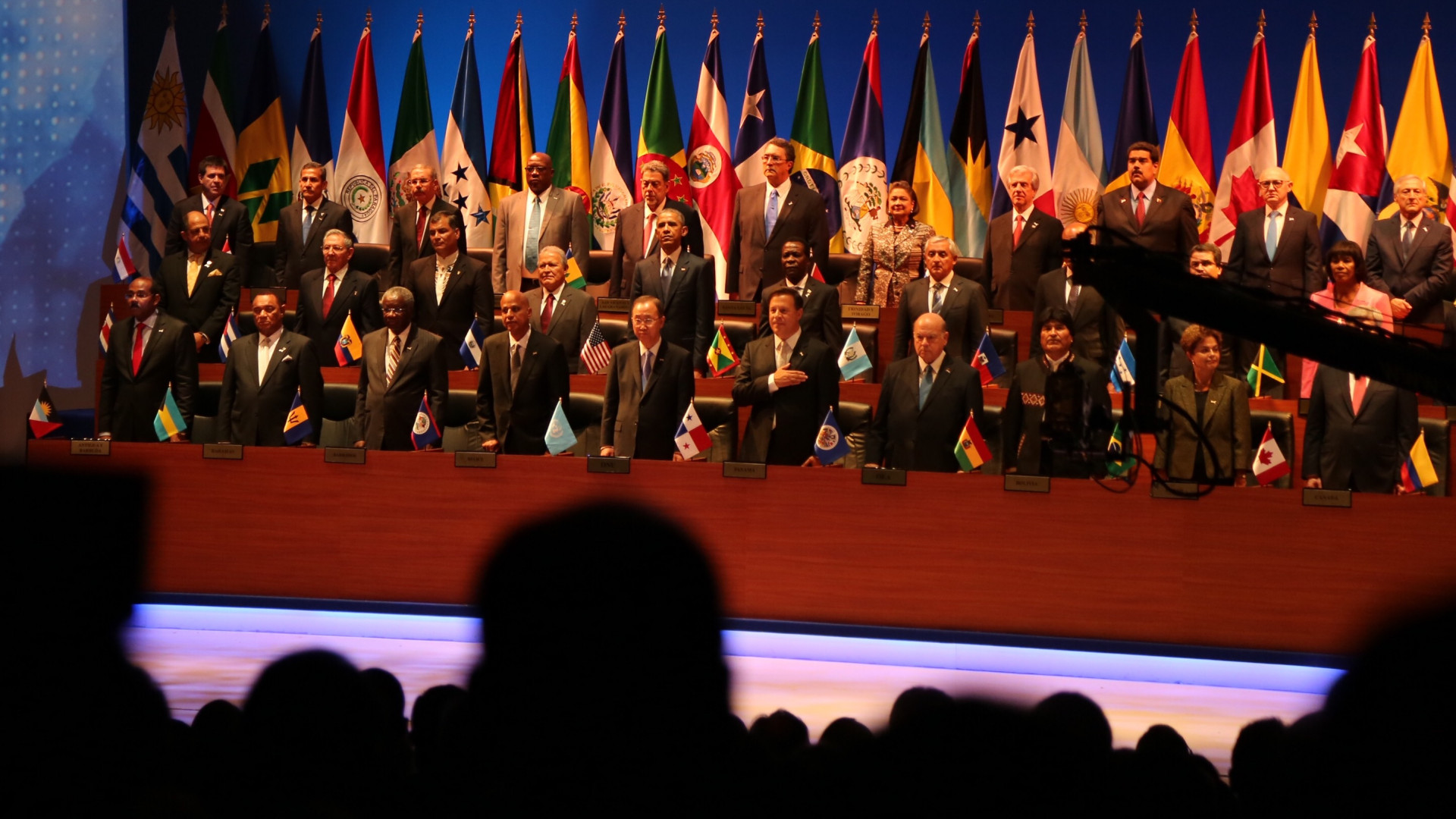 Foto de los Jefes de Estado y de Gobierno, durante el acto inaugural de la VII Cumbre de las Américas 2015 en Panamá.
