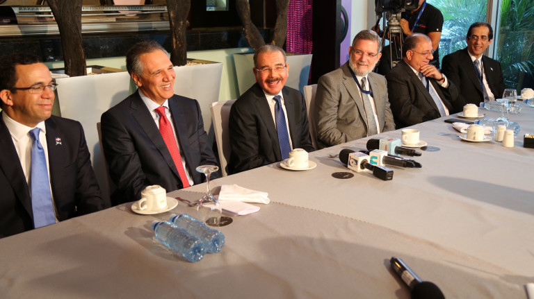Danilo Medina conversa con Nuria Piera, José Monegro, Alicia Ortega y Roberto Cavada