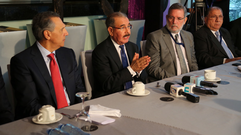 Danilo Medina conversa con Nuria Piera, José Monegro, Alicia Ortega y Roberto Cavada