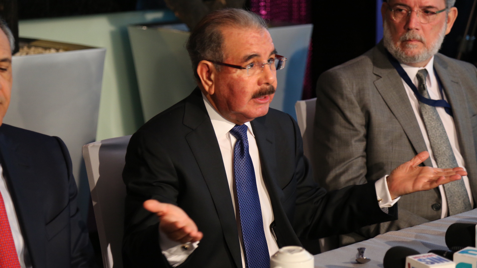 Danilo Medina conversa con Nuria Piera, José Monegro, Alicia Ortega y Roberto Cavada