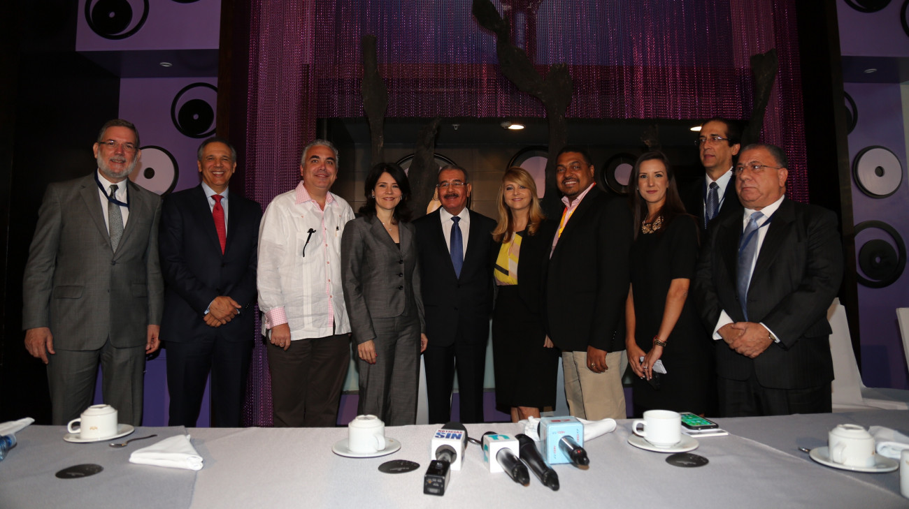 Danilo Medina conversa con Nuria Piera, José Monegro, Alicia Ortega y Roberto Cavada