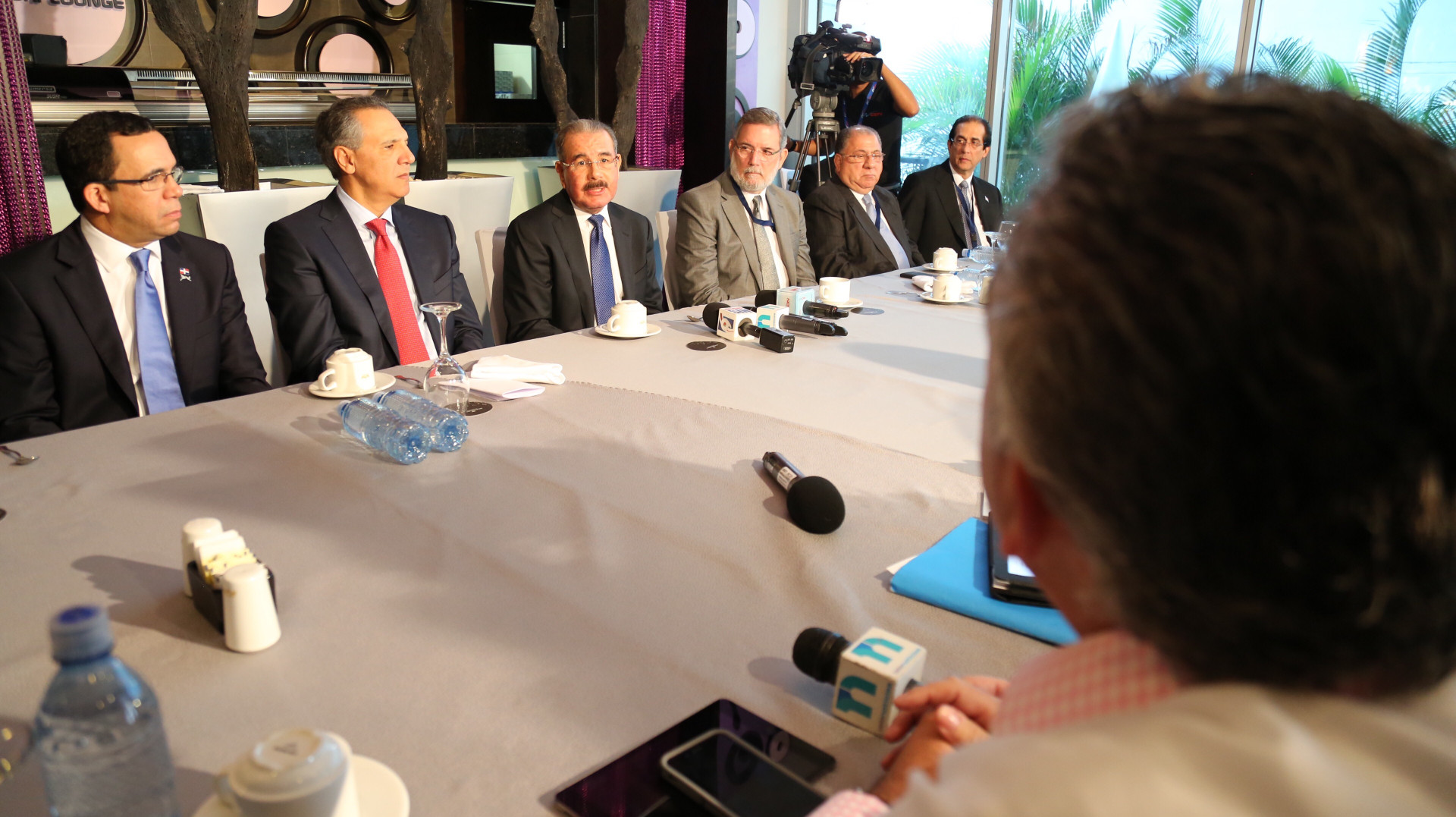 Danilo Medina conversa con Nuria Piera, José Monegro, Alicia Ortega y Roberto Cavada