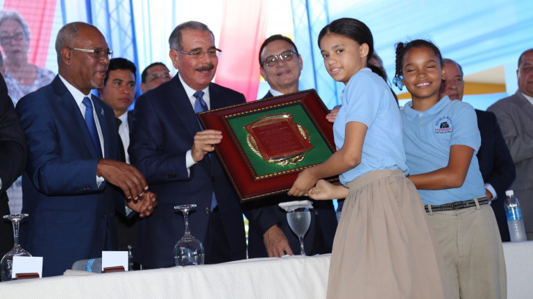 El presidente entregó a la comunidad educativa de San Pedro de Macorís 11 nuevas aulas para la Jornada de Tanda Extendida, en la escuela básica Eukarduna.