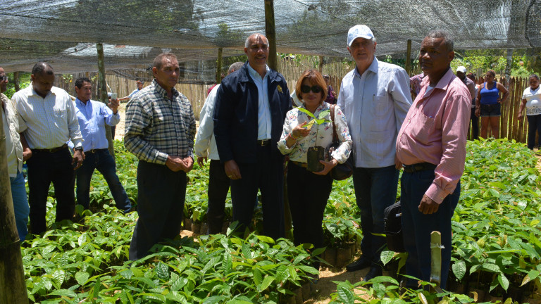 Doctor Gero Vaagt, representante de la FAO en el país; Guadalupe Jáquez, gobernador civil de la provincia Hato Mayor; Severino Figuereo, gerente del IAD en la zona, entre otras autoridades de la región.