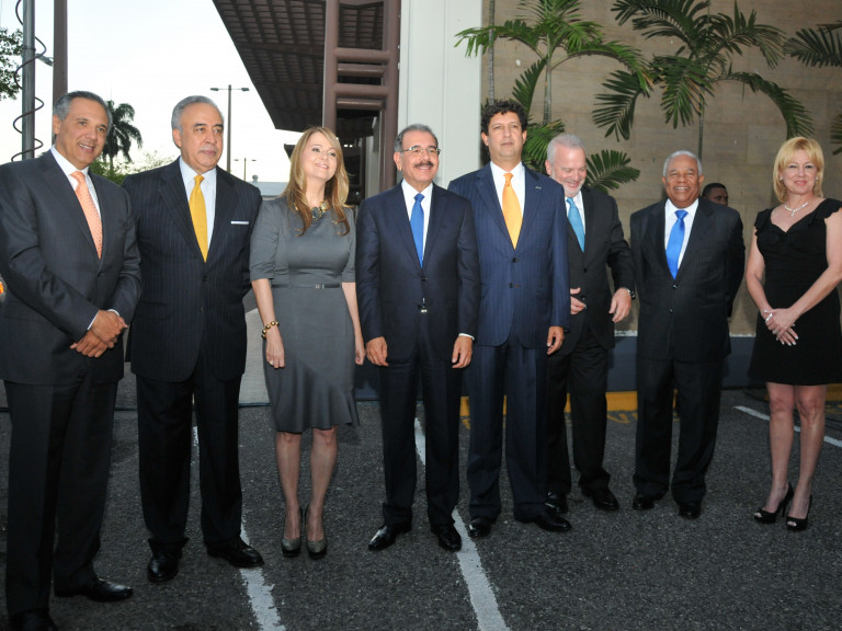 El presidente Danilo Medina fue recibido por Nuria Piera y ejecutivos de Multimedios del Caribe, en el área de parqueos, de esa empresa de comunicación, para entrar juntos a los nuevos estudios de televisión, en alta definición, que serán inaugurados por CDN y Provideo, S. A.