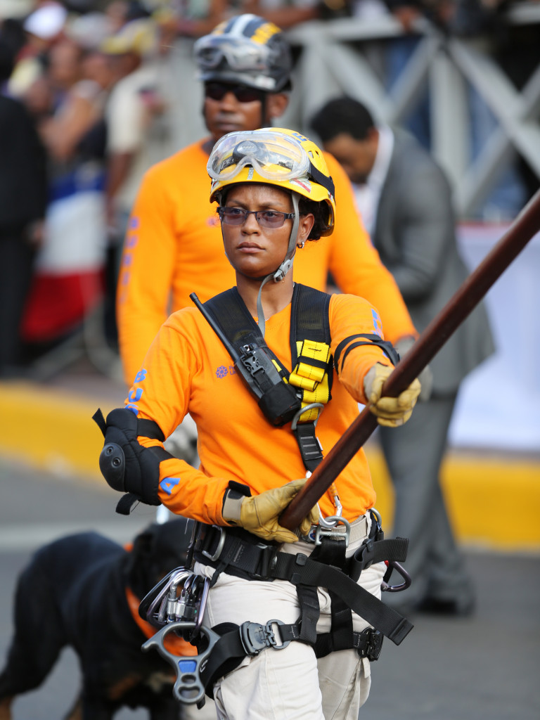 Miembras de la Defensa Civil toman parte en el desfile cívico militar, en Santiago de los caballeros, en celebración por el 169 aniversario de la Batalla del 30 de Marzo.