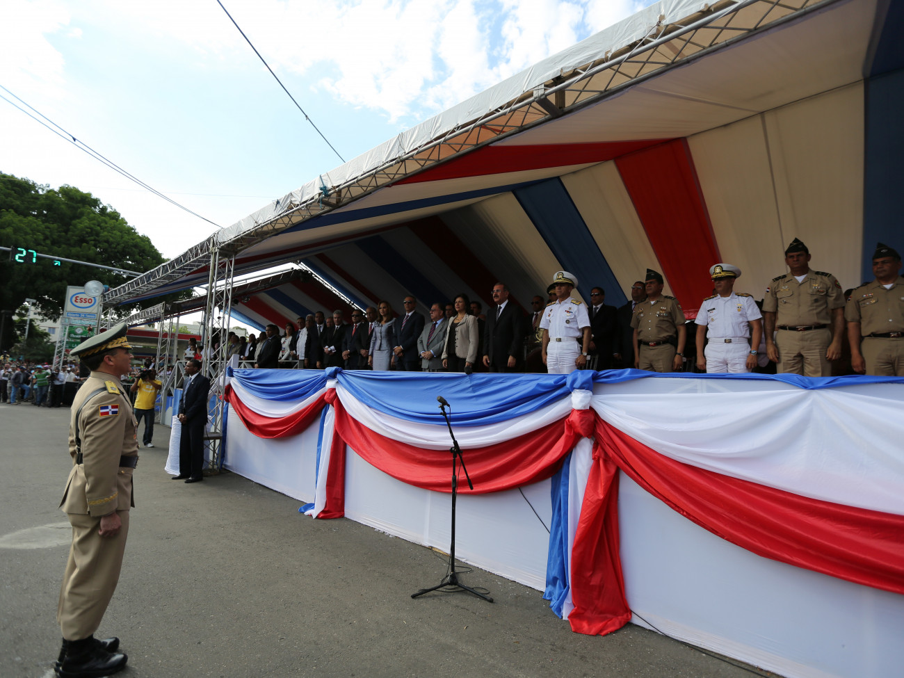 El general Alexis R. Santana Almonte solicita permiso al presidente Danilo Medina para iniciar el desfile cívico militar en Santiago de los Caballeros.