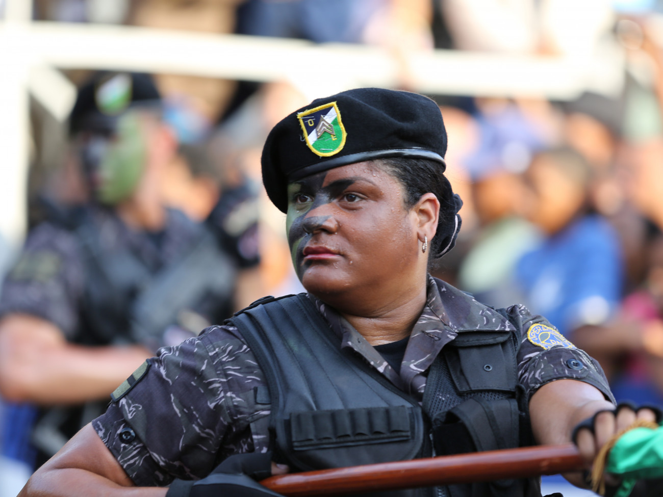 Ésta dama, integrante de los cuerpos especializados de la Fuerzas Armadas, participa en el desfile cívico militar, en Santiago de los Caballeros, en conmemoración a la Batalla del 30 de Marzo de 1844.