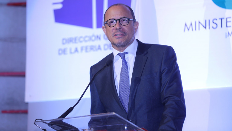 Ministro de Cultura, José Antonio Rodríguez, mientras pronunciaba las palabras centrales del acto inaugural de la XVIII Feria Internacional del Libro Santo Domingo 2015.