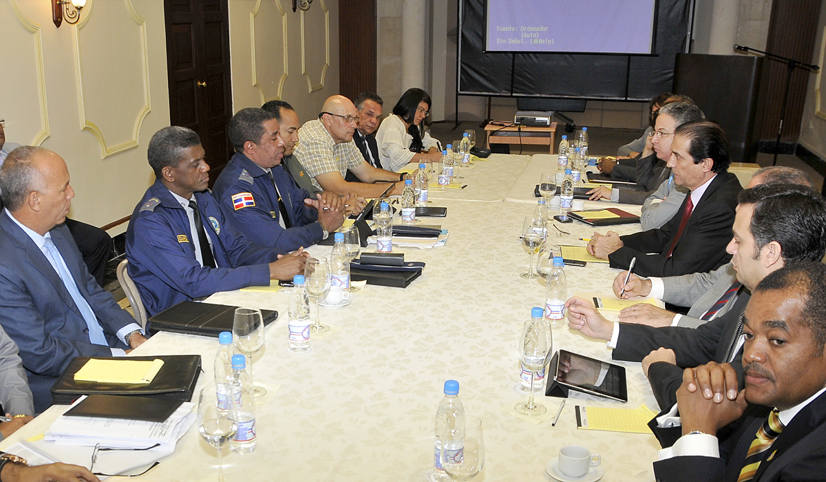 Los miembros de la comisión ampliada del Plan Integral de Seguridad Ciudadana durante una reunión en el salón Hermanas Mirabal del Palacio Nacional.