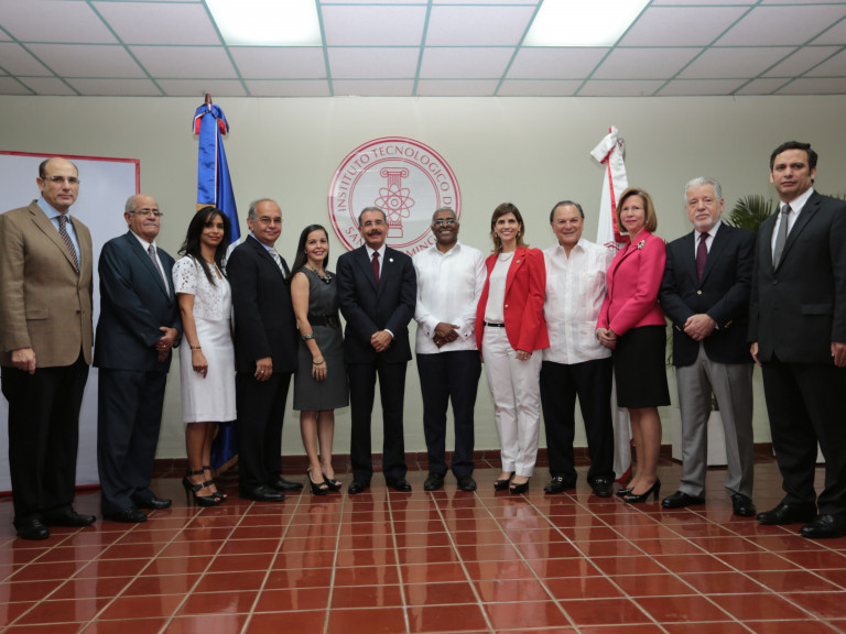 El presidente de la República, Danilo Medina, (centro) junto a los miembros de la Junta de Regentes del Instituto Tecnológico de Santo Domingo (INTEC).