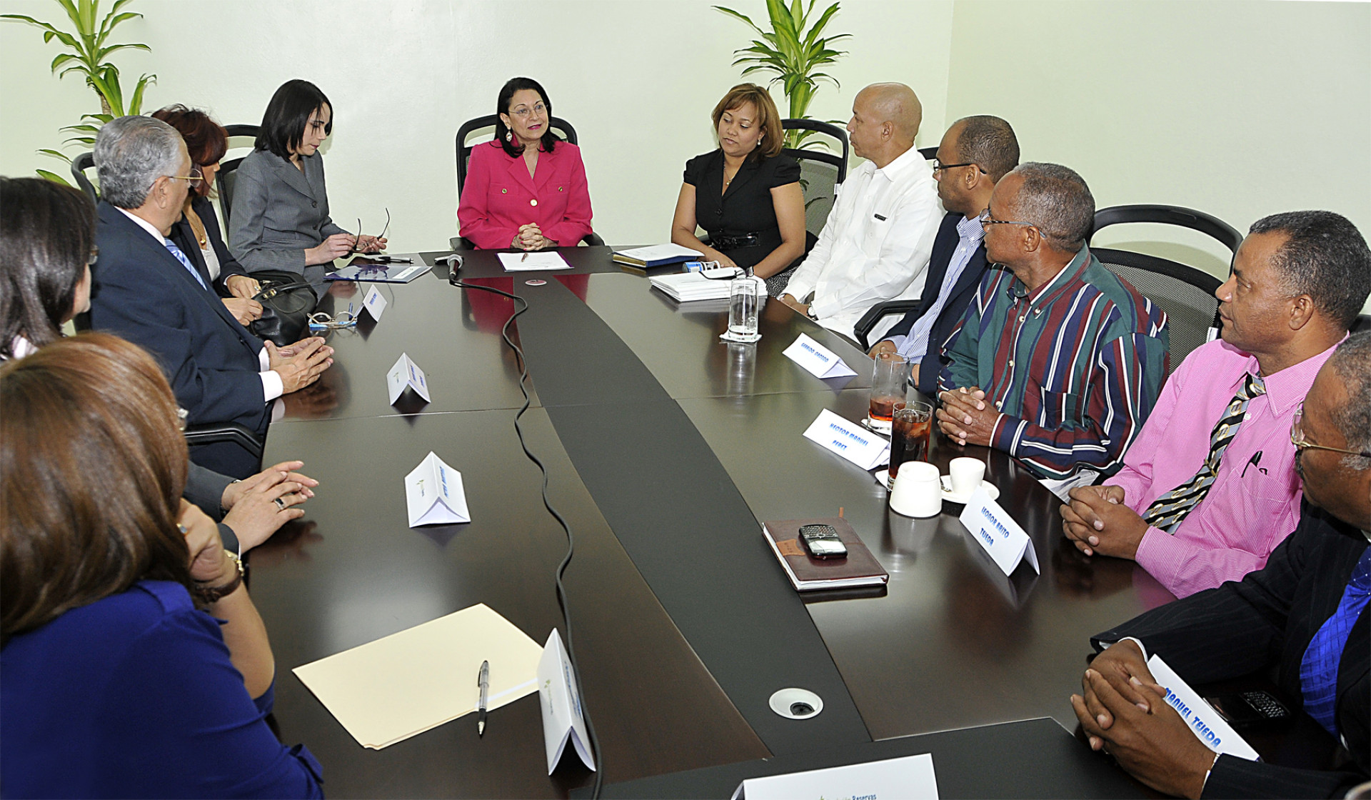 La directora ejecutiva de la Fundación Reservas del País, Santa Rita Álvarez, conversa con los micro y pequeños empresarios y dirigentes de ONGs que reciben recurso a través de la entidad que dirige.