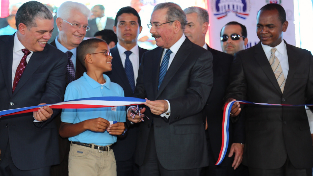 El presidente Danilo Medina, entregó hoy a la comunidad Cruce de Arroyo Hondo, de la provincia Peravia, la escuela San José Fe y Alegría que integrará 22 aulas a la Jornada de Tanda Extendida.
