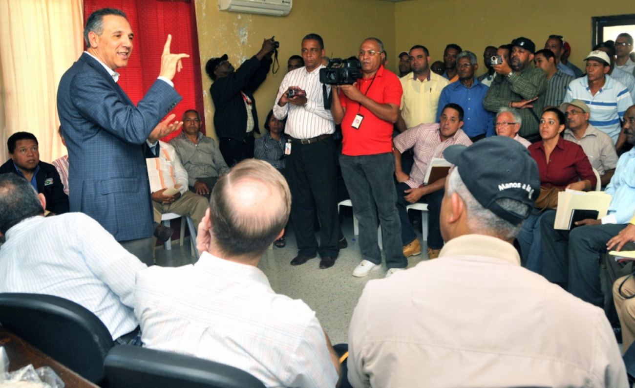 El ministro Administrativo de la Presidencia, José Ramón Peralta, habla con los casaberos de Monción. Peralta se trasladó al municipio a dar cumplimiento a la promesa del presidente Danilo Medina.