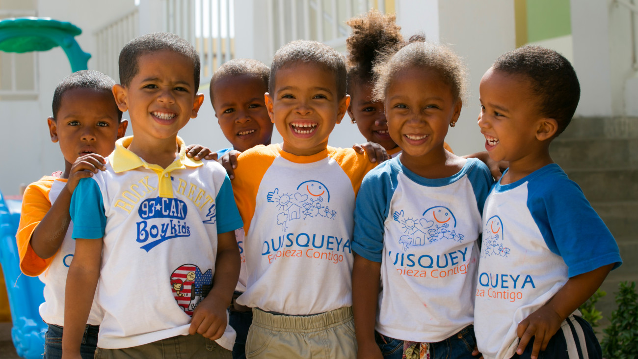 Caritas felices de niñas y niños de la estancia infantil Nuevo Boca de Cachón, del Plan Quisqueya Empieza Contigo (QEC), construido al otro lado del Lago Enriquillo, provincia Independencia, por disposición del presidente Danilo Medina en favor de la educación.