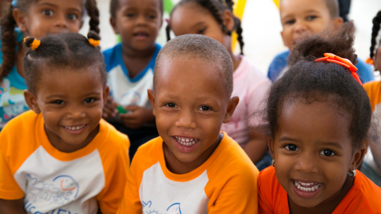 Caritas felices de niñas y niños de la Estancia Infantil Nuevo Boca de Cachón, del Plan Quisqueya Empieza Contigo (QEC), construido al otro lado del Lago Enriquillo, provincia Independencia, por disposición del presidente Danilo Medina en favor de la educación.