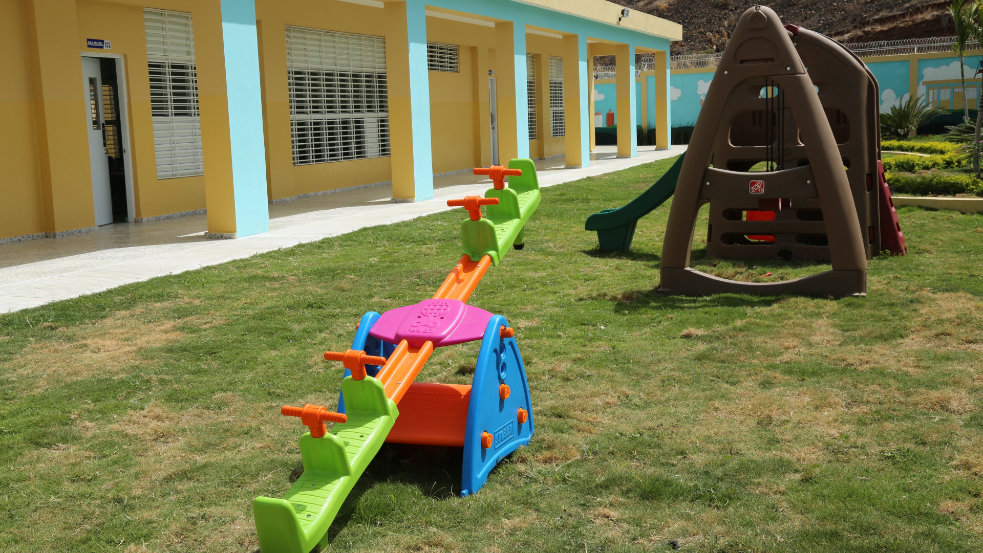 Área de recreación infantil de uno de los nuevos centros de estudios entregados por el presidente Danilo Medina a la provincia Peravia.