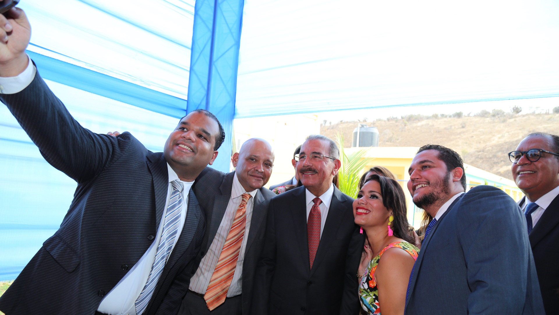 El presidente Danilo Medina mientras comparte con personalidades de la provincia e invitados especiales, presentes en el acto inaugural por los nuevos centros de estudios.