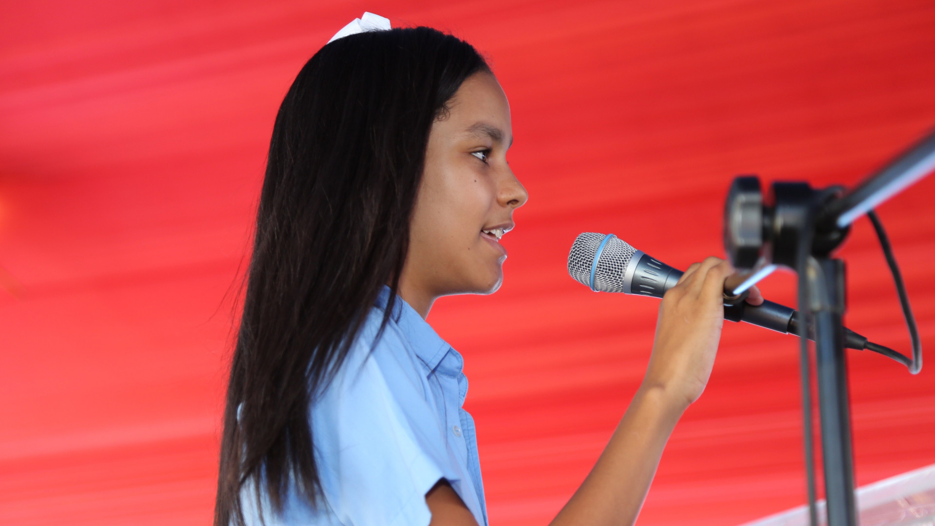 Altagracia Vallejo Bueno, estudiante del centro entregado agradeció al gobernante por el esfuerzo y la prioridad puesta para mejorar la educación,