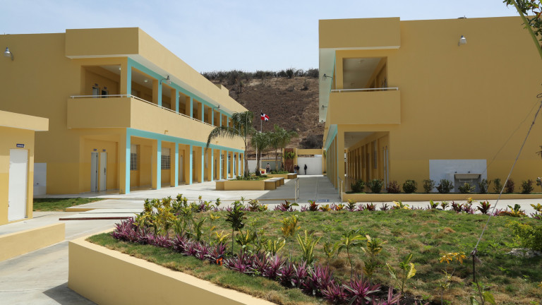 Vista del patio interior de uno de los centros entregados hoy durante acto encabezado por el presidente Danilo Medina.