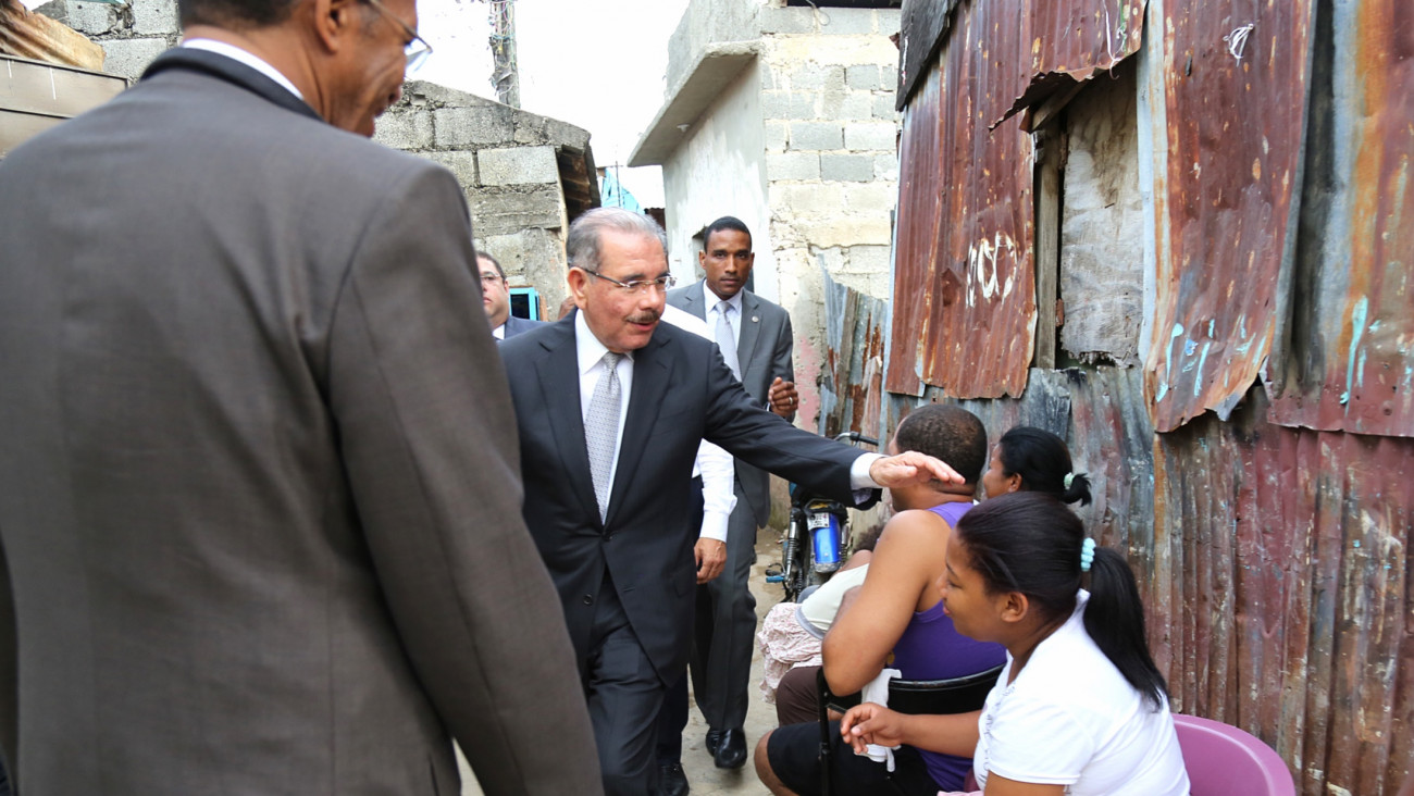 Recorrido del presidente Danilo Medina por diferentes calles y callejones del sector La Ciénaga para contactar el mal estado de la cañada El Arrozal, atendiendo una carta que le enviara el párroco de la Iglesia San Ignacio de Loyola, padre Eduard Figueroa Sánchez.