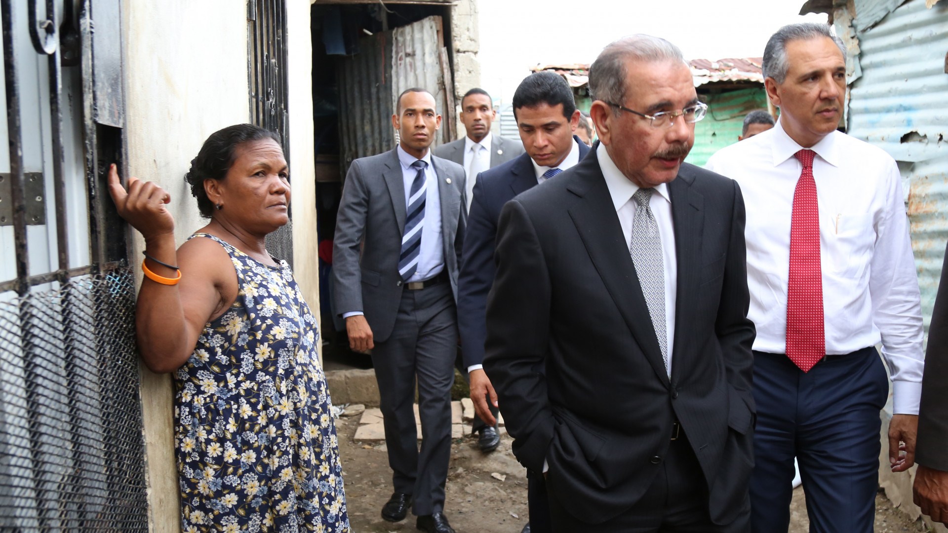 Recorrido del presidente Danilo Medina por diferentes calles y callejones del sector La Ciénaga para contactar el mal estado de la cañada El Arrozal, atendiendo una carta que le enviara el párroco de la Iglesia San Ignacio de Loyola, padre Eduard Figueroa Sánchez.