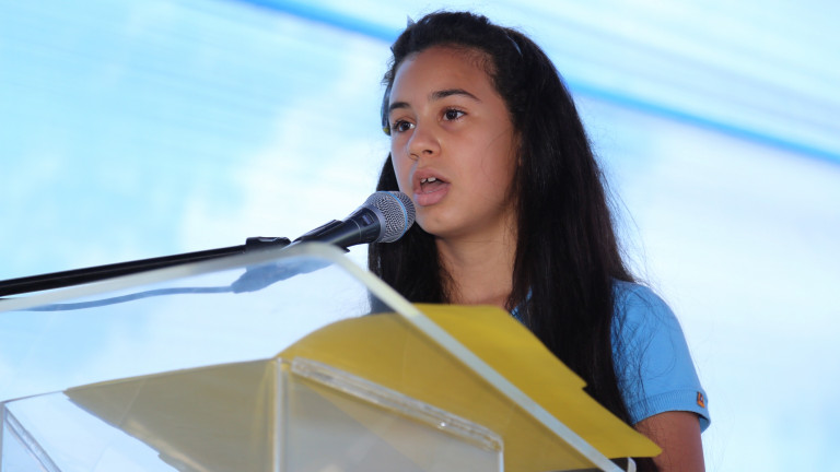 "Gracias, presidente Danilo Medina, por darnos la esperanza de tener una educación de calidad", dijo Mariely Cosme, del séptimo grado de básica, al momento de agradecer la obra en representación de los estudiantes.