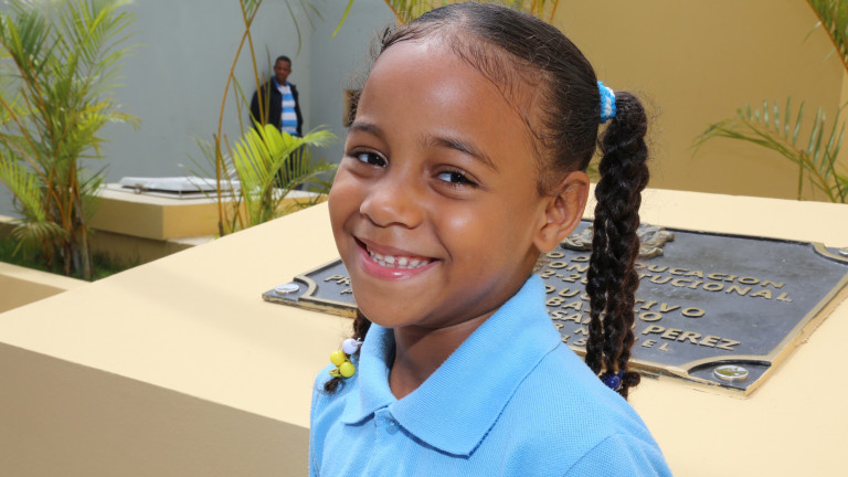 Otra estudiante feliz presente en el acto inaugural por el remozamiento y ampliación de su nuevo Centro Educativo de Nivel Básico Prof. Antonio Rosario Pérez,.