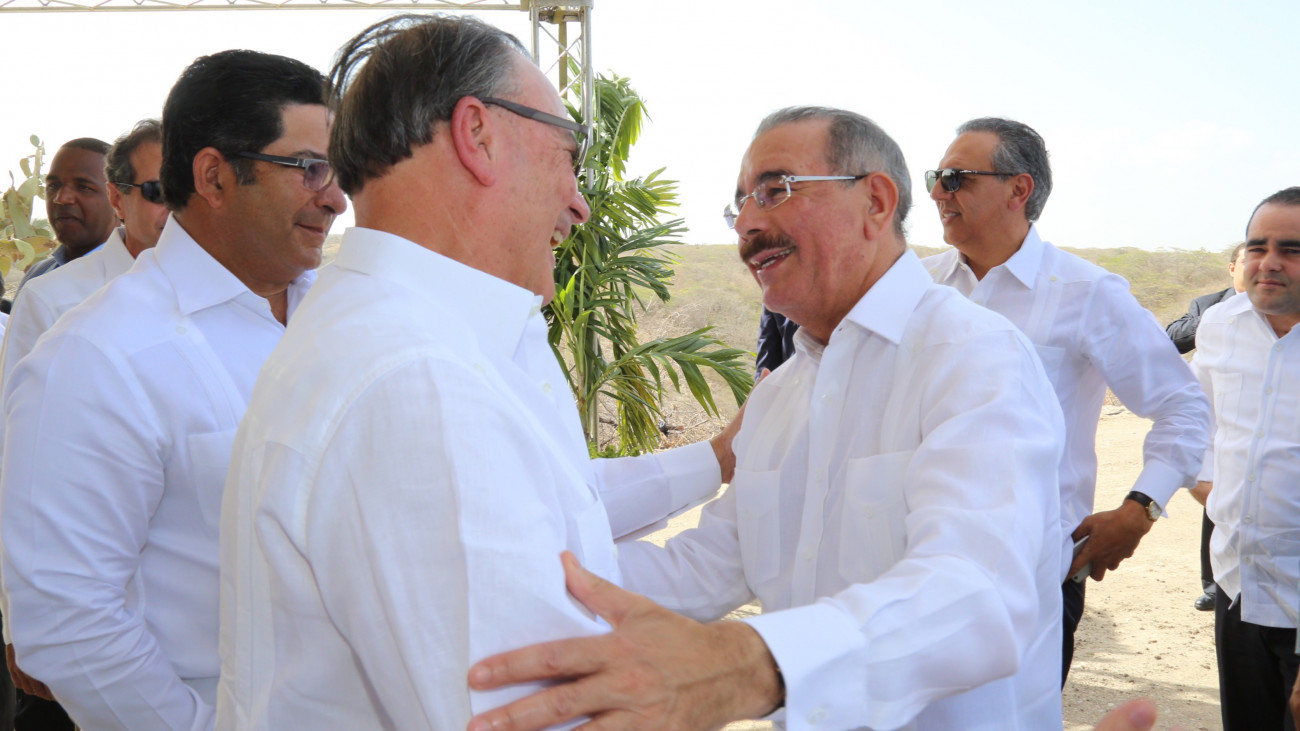 El presidente Danilo Medina y el empresario turístico Frank Rainieri se saludan a la llegada del mandatario y sus acompañantes, previo al inicio de la ceremonia.